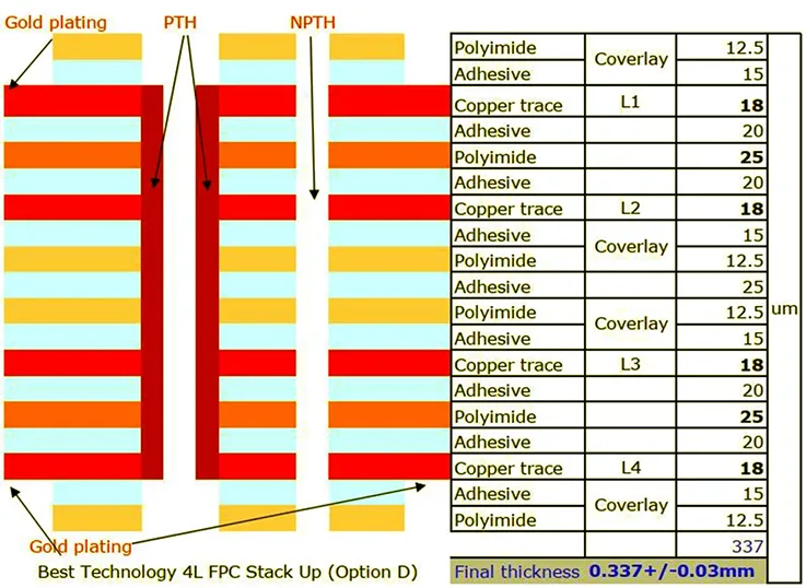 The layer stack-up is a critical aspect of multi-layer flex PCB design. It determines the number of layers, layer thickness and material selection. The objective is to strike a balance between flexibility, durability and functionality. The stack-up must be optimized to minimize stress on the flex circuit during bending and ensure proper signal integrity.